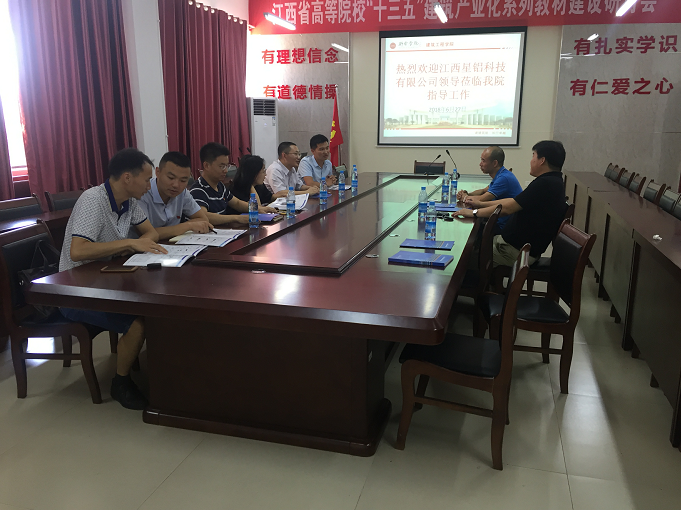 為響應(yīng)國家關(guān)于學(xué)校與企業(yè)合作的號召,充分發(fā)揮學(xué)校與企業(yè)雙方的共同優(yōu)勢,為社會、企業(yè)培養(yǎng)高素質(zhì)、高技能的優(yōu)秀人才,同時也為大學(xué)生實(shí)習(xí)、就業(yè)提供更多的平臺。2018年6月27日,由星鋁科技與新余學(xué)院共同舉辦的校企合作洽談會在新余學(xué)院召開,參加此次會議的有:星鋁科技董事長劉軍虎、總經(jīng)理王貞寶、新余學(xué)院副書記徐理、副院長張小義、團(tuán)委書記鐘鑫及部分建筑工程學(xué)院的專業(yè)教師。