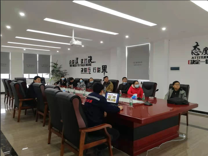 總經(jīng)理王貞寶向來訪人員介紹公司的基本情況、發(fā)展歷程及生產(chǎn)車間的工藝流程。